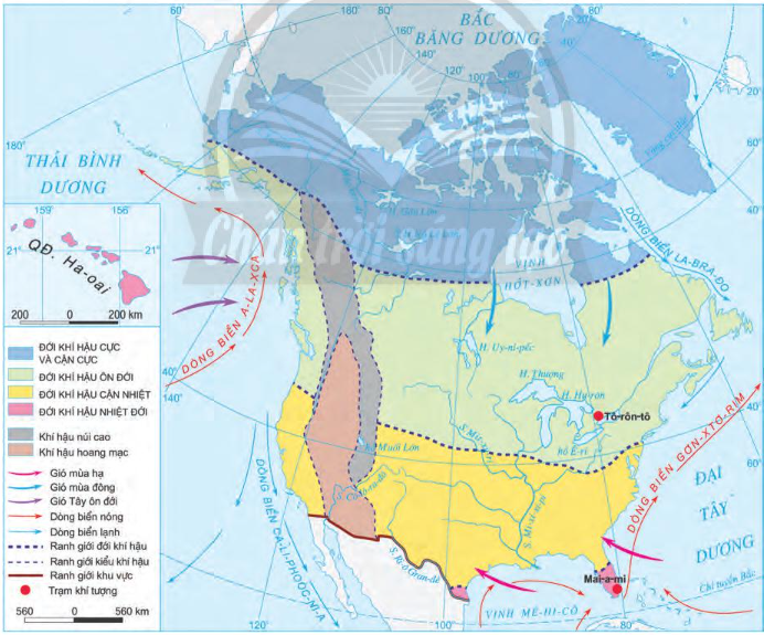 Hình 14.2. Bản đồ khí hậu khu vực Bắc Mỹ