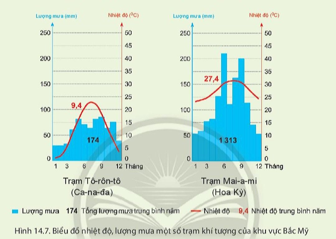 - Trạm Tô-rôn-tô: nằm ở phía đông nam Ca-na-đa, thuộc đới khí hậu ôn đới.