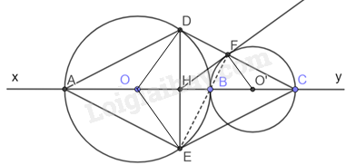 Trên đường thẳng xy, lấy lần lượt ba điểm A, B, C sao cho AB > BC. Vẽ đường tròn (O) đường kính AB và đường tròn (O’) đường kính BC.