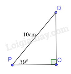 Cho tam giác OPQ vuông tại O có \(\widehat P = {39^o}\) và PQ = 10 cm. Hãy giải tam giác vuông OPQ.