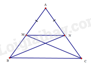 Cho tam giác \(ABC\) cân tại \(A\). Lấy điểm \(M,N\) lần lượt trên cạnh \(AB,AC\) sao cho \(AM = AN\).