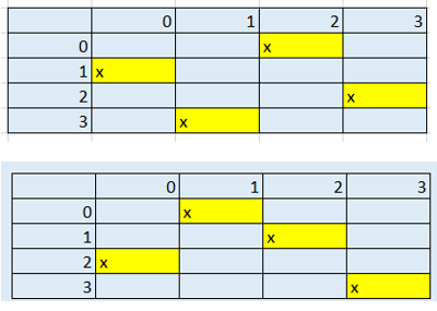 Hãy tìm bằng tay (không cần máy tính) cả hai phương án của bài toán xếp Hậu với n = 4