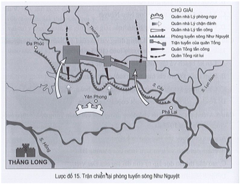 1. Trên đường kéo quần vảo Thăng Long, quân Tống bị quân đội nhà Lý chặn lại ở bờ bắc sông Như Nguyệt.