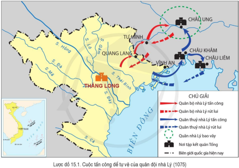 Đọc thông tin và quan sát hình 15, lược đồ 15.1, hãy làm sáng tỏ nét độc đáo trong kế sách của nhà Lý khi tấn công sang đất Tống.