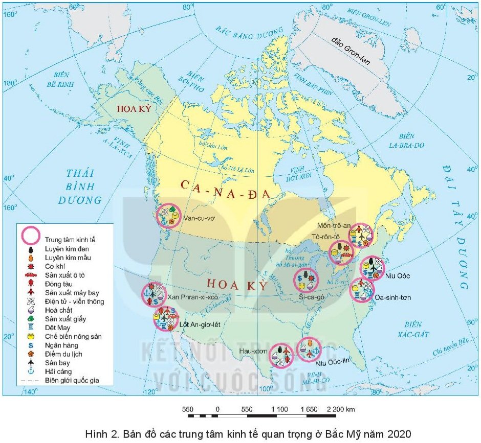 - Xác định trên bản đồ các trung tâm kinh tế quan trọng ở Bắc Mỹ.