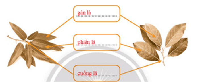 Viết vào chỗ (…) tên các bộ phận chính của các lá cây trong hình.