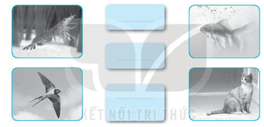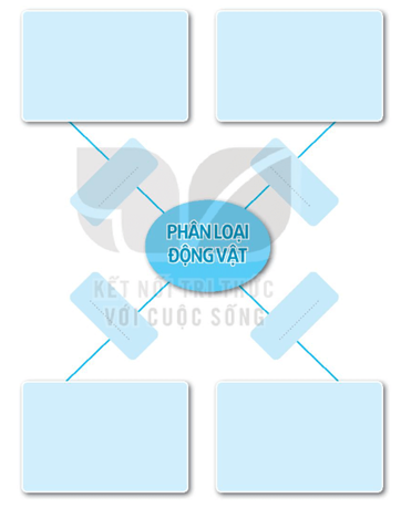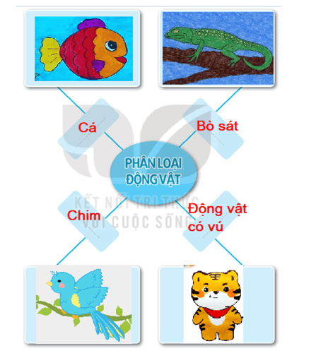 Vẽ, cắt, dán hình ảnh các con vật vào ô trống và lựa chọn cách phân loại phù hợp để viết vào chỗ (…) trong hình sau:
