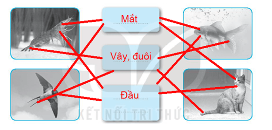 a) Hãy viết vào ô trống tên bộ phận giống nhau của các con vật trong hình.