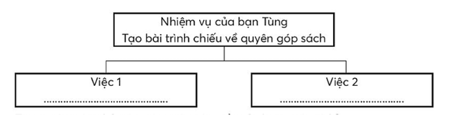 b) Em hãy trình bày chia nhỏ việc tạo bài trình chiếu của bạn Tùng và điện các việc nhỏ vào chỗ chấm trong hình dưới đây.