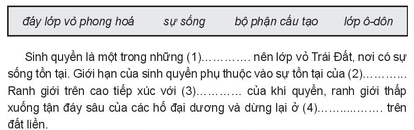 Đọc lại thông tin về đặc điểm sinh quyển mục 2 SGK trang 47.