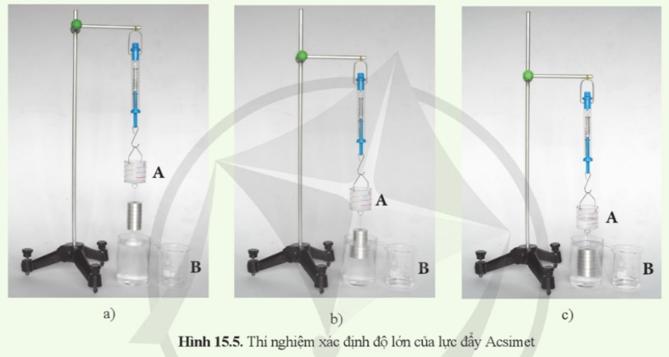 Mô tả lực đẩy Acsimet tác dụng vào vật đặt trong chất lỏng (Hình 15.4)