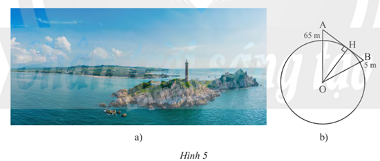 Ngọn của hải đăng là điểm \(A\) và mắt người quan sát ở vị trí \(B\). Khi người quan sát thấy ngọn hải đăng thì \(AB\) là tiếp tuyến của đường tròn \((O)\) tại \(H\).