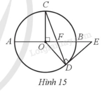 Cho đường tròn tâm O đường kính AB = 2R, bán kính OC vuông góc với AB tại O. Lấy điểm F thuộc đoạn thẳng OB, tia CF cắt đường tròn (O) tại D. Tiếp tuyến tại D của đường tròn (O) cắt AB tại E (hình 15). Chứng minh EF = ED.