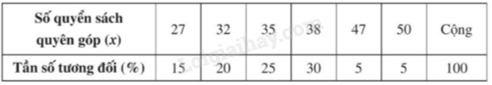 Thống kê số quyển sách quyên góp ủng hộ thư viện nhà trường của 100 học sinh khối 9 như sau: