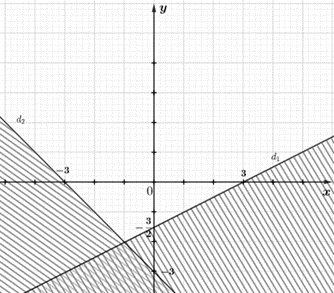 Miền nghiệm của hệ bất phương trình là miền không bị gạch như trong hình vẽ sau: