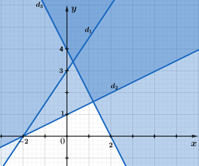 c) Ta có ba đường thẳng: \({d_1}: - 3x + 2y = 6;{d_2}:x - 2y = - 2;{d_3}:2x + y = 4\)