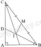 b) Tia phân giác của \(\widehat {ACB}\) cắt BD ở I. Gọi M là trung điểm của BC. Chứng minh \(\widehat {BIM} = {90^0}\).