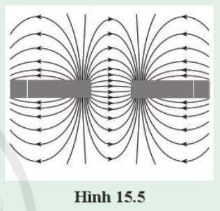 Biết chiều đường sức từ của hai nam châm như hình 15.5. Hãy xác định tên các cực từ của hai nam châm.
