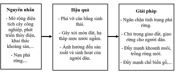 Vẽ sơ đồ thể hiện nguyên nhân, hậu quả của việc suy giảm rừng và giải pháp để bảo vệ rừng ở vùng Tây Nguyên.