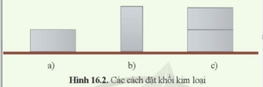So sánh áp suất do khối kim loại tác dụng lên cát trong trường hợp hình 16.2a với 16.2b và 16.2c.