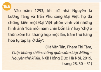 - Tìm những cụm từ trong tư liệu 16.6 cho thấy sự phát triển kinh tế Đại Việt dưới góc nhìn của sứ thần nhà Nguyên.