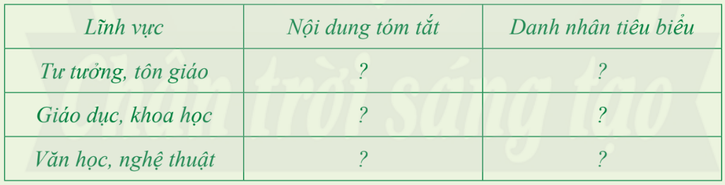 B2: Nêu thành tựu trên các lĩnh vực: tôn giáo, khoa học kĩ thuật, văn học và nghệ thuật,...