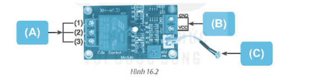 Ghi rõ tên các vị trí tương ứng của mô đun cảm biến ánh sáng XH M131 (Hình 16.2) vào mẫu Bảng 16.2.
