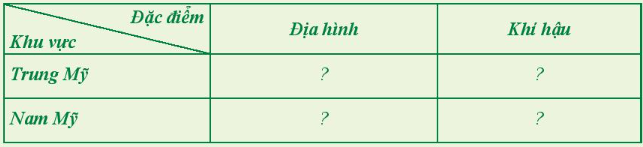 Dựa vào nội dung bài học, em hãy hệ thống hóa một số đặc điểm tự nhiên của khu vực Trung và Nam Mỹ vào bảng theo mẫu sau: