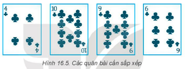 b) Em hãy mô phỏng lại thuật toán trên với các quân bài trong Hình 16.5.