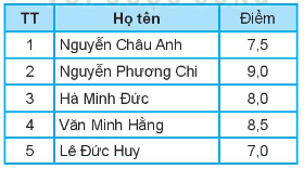 Em hãy sắp xếp lại danh sách theo thứ tự tăng dần của điểm bằng cách dùng thuật toán sắp xếp nổi bọt và sắp xếp chọn.
