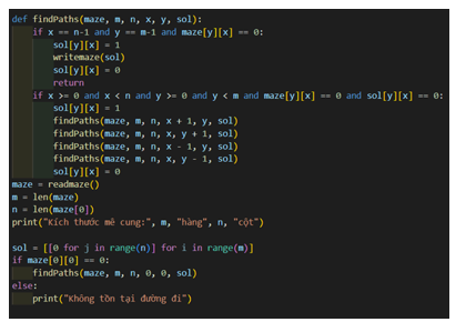Nếu sửa yêu cầu đề bài đặt vị trí xuất phát tại ô giữa của mê cung (ví dụ vị trí m//2. n//2), vị trí thoát của mê cung là ô trái trên hoặc phải dưới của mê cung thì cần sửa chương trình như thế nào?
