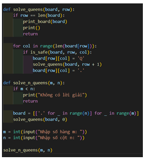 Giải bài toán xếp Hậu tổng quát m hàng n cột trong đó m và n là các số tự nhiên bất kì (m≥n)