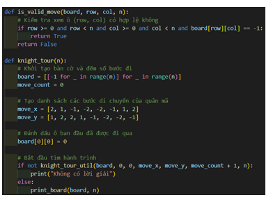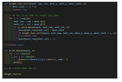 - Ta sẽ thử tất cả các bước di chuyển hợp lệ của quân mã từ một ô đang xét và đi tiếp cho đến khi quân mã đã đi qua tất cả các ô trên bàn cờ.