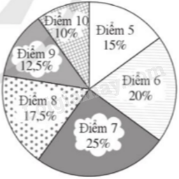 b) Số đo các góc trong biểu đồ quạt tròn của số điểm 5,6,7,8,9,10 lần lượt là: