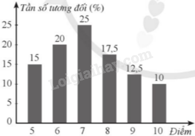 b) Vẽ biểu đồ tần số tương đối (ở đạng biểu đồ cột và biểu đồ hình quạt tròn) của mẫu số liệu thống kê đó.