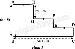 Ở hình bên, độ dài các cạnh AB, BC và GH được cho theo a và b; hai cạnh CD và EF bằng nhau; ba cạnh AH, GF và ED bằng nhau.