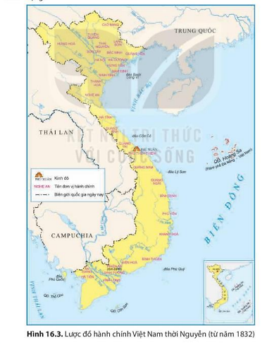 1. Khai thác lược đồ hình 16.3, em có nhận xét gì về đơn vị hành chính thời Nguyễn