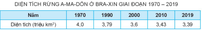 - Nhận xét sự thay đổi diện tích rừng A-ma-dôn ở Bra-xin giai đoạn 1970 – 2019.