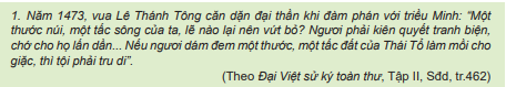 B3: Đọc tư liệu 1 qua đó thấy được quan điểm ngoại giao của vua Lê Thánh Tông với nhà Minh đó là kiên quyết giữ vững chủ quyền dân tộc.