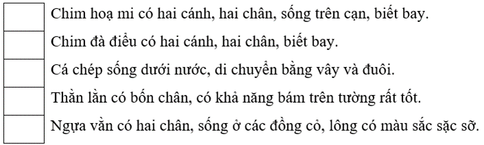 Đánh dấu ✔ vào ô trống trước các phát biểu đúng.