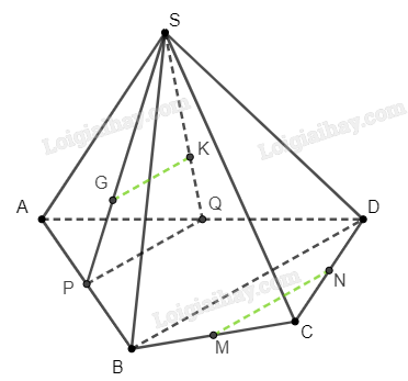 Tam giác \(SPQ\) có \(\frac{{SG}}{{SP}} = \frac{{SK}}{{SQ}}\) nên theo định lí Thales ta có \(GK\parallel PQ\).