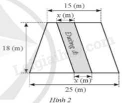 Cho một khu đất có dạng hình thang với đáy nhỏ 15 (m), đáy lớn 25 (m), chiều cao 18 (m). Bác Lâm muốn dành ra một mảnh vườn có dạng hình bình hành với cạnh đáy x (m), chiều cao 18 (m) như Hình 2(0 < x < 15). Tìm giá trị lớn nhất của x để diện tích của phần đất còn lại không dưới 270 m2.