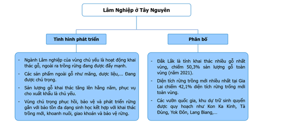 Vẽ sơ đồ về sự phát triển và phân bố lâm nghiệp tại Tây Nguyên.