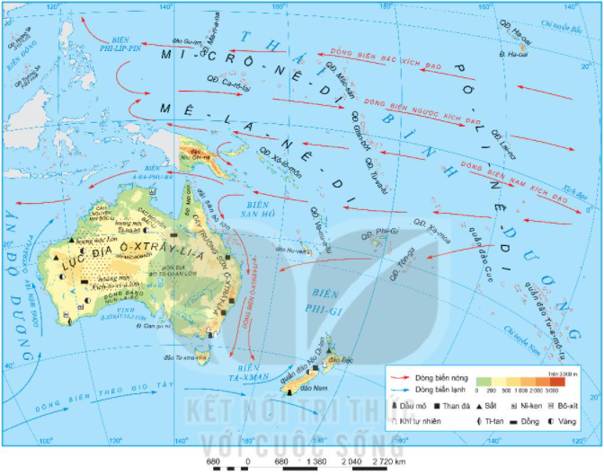 Hình 1. Bản đồ tự nhiên châu Đại Dương