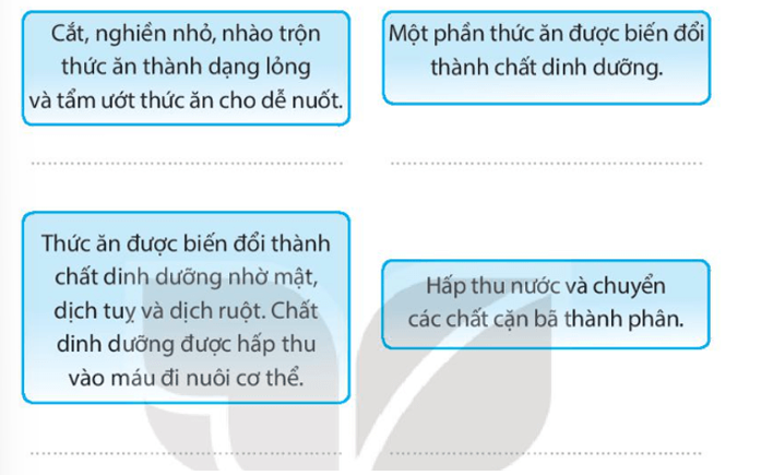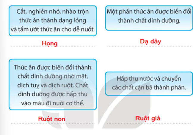 Hãy viết tên các bộ phận của cơ quan tiêu hoá vào chỗ (…) cho phù hợp với chức năng của chúng.
