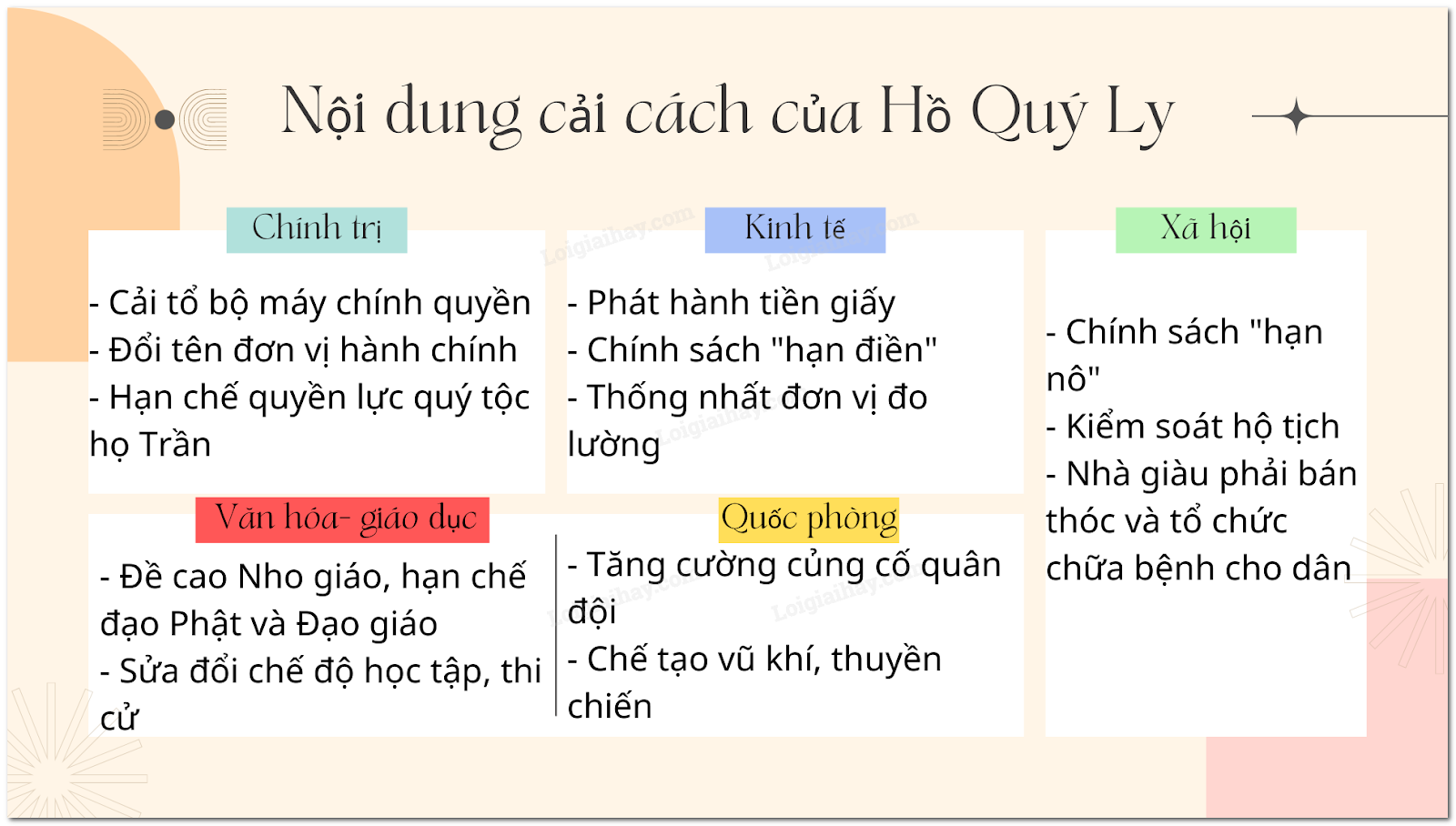 - Giới thiệu nội dung chủ yếu trong cải cách của Hồ Quý Ly.