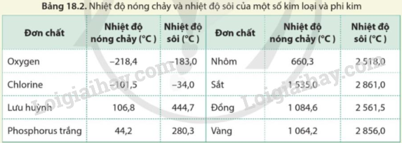 a) Nhiệt độ nóng chảy và nhiệt độ sôi của kim loại cao hơn rất nhiều so với phi kim