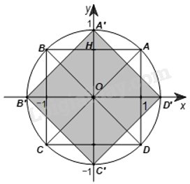 Tương tự, ta chứng minh được, phép quay ngược chiều 45° tâm O biến các điểm A, B, C, D lần lượt thành các điểm \(A'(0;\sqrt 2 ),B'\left( { - \sqrt 2 ;0} \right),C'(0; - \sqrt 2 ),D\left( {\sqrt 2 ;0} \right)\).