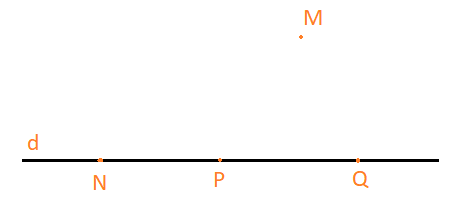 a) Đường thẳng d đi qua ba điểm thẳng hàng N, P, Q trong đó P nằm giữa hai điểm N và Q