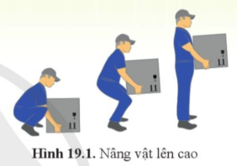Để đưa một vật lên cao, người công nhân có thể trực tiếp tác dụng lên vật một lực hướng thẳng đứng lên trên (hình 19.1). Tuy nhiên, trong một số trường hợp, do kích thước hay khối lượng của vật lớn sẽ khó nâng trực tiếp theo cách này. Có cách nào để nâng được vật lên mà không cần tác dụng lực theo phương thẳng đứng?
